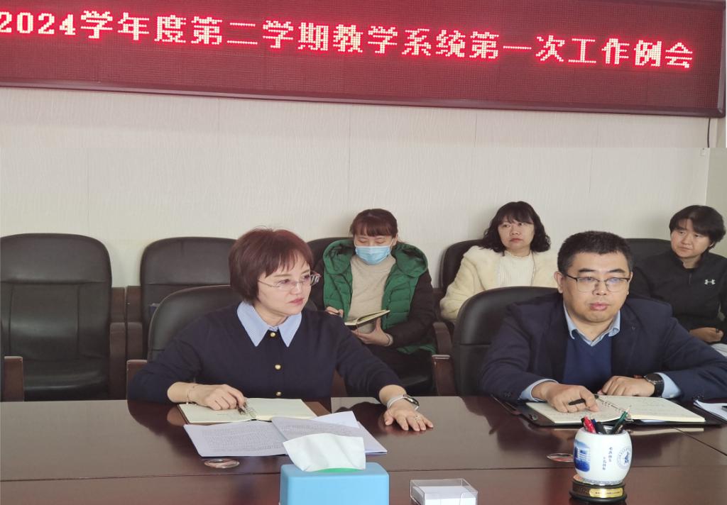 2月28日,我校召开了2023-2024年度第二学期教学系统第一次工作例会,副校长张晓娟出席会议。会议由教务处处长罗大伟主持。 会上,张晓娟对上学年教学工作的有序开展给予了充分肯定,针对本学年教学工作从三个方面八项具体工作进行了部署并提出五点要求。一是继续做好新学期的各项准备工作。二是全校要以“双高”建设为主线提高站位。严谨、严格、规范开展各项工作,做到早谋划、早动手、早实施。三是狠抓教学组织管理。转变工作作风,强化校风师风,增强责任心,打造有效课堂。四是深化教学改革。以课程建设为突破口,积极筹备国家教学能力大赛,着力培育高水平教学成果。五是持续推进招生和就业工作。要招生就业两手抓,创新宣传方式。 罗大伟从教师管理、安全管理、实习管理、教学水平提升、专业建设、赛事准备等方面进行工作安排。教务处副处长刘凯、宋丽伟分别对常规教学运行、实训安排等方面工作做了具体说明。 教务处全体人员及各教学单位负责同志参加会议。 (供稿单位:教务处 初审:孟令飞 复审:刘莹 终审:汤海涛)