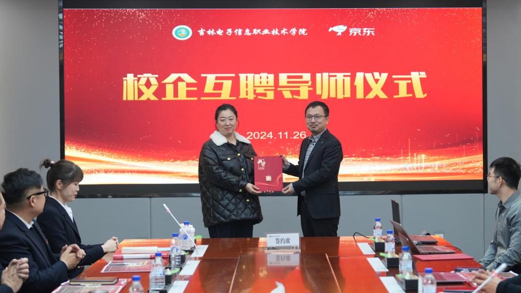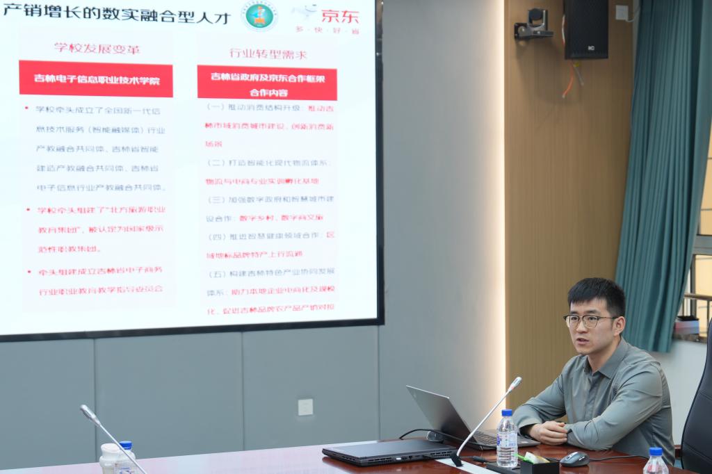 11月26日,学校京东数字商业产业学院成立暨揭牌仪式在新山校区匠德楼四号会议室举行。学校副校长张晓娟出席仪式并讲话。京东物流集团教育业务部北方大区总经理于洋、建设方案经理岳辛、吉林省区经理贺宇、京东科技集团吉林省区副总经理杨帆、京东春晓计划讲师孙宇婷,教务处处长罗大伟、财经学院主要负责同志及相关专业教师参加仪式。仪式由财经学院办公室主任王盛瑄主持。