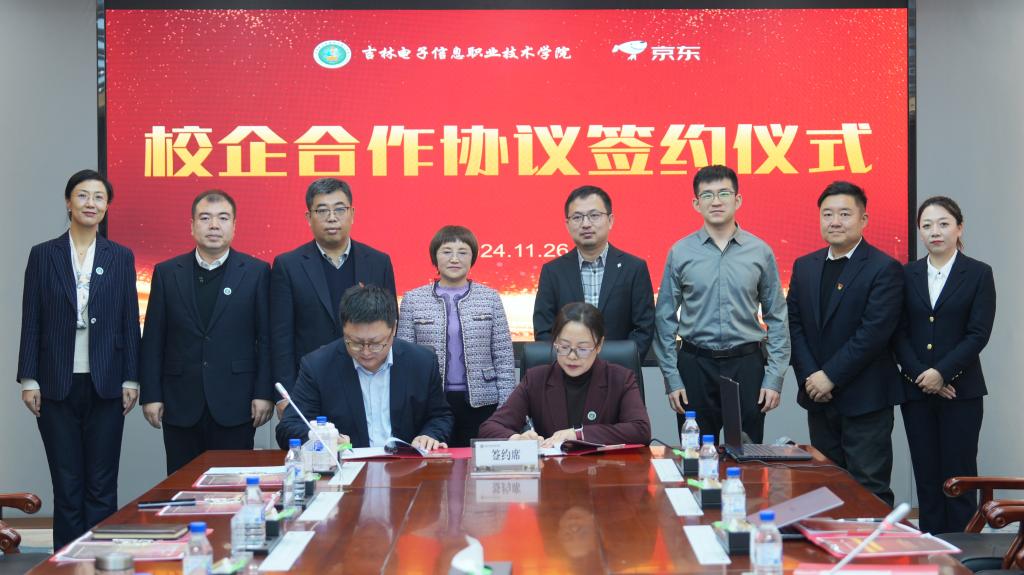 财经学院院长吕岩荣与京东物流集团教育业务部吉林省区经理贺宇代表校企双方郑重签订合作协议,共同开启数字商业教育的新篇章。