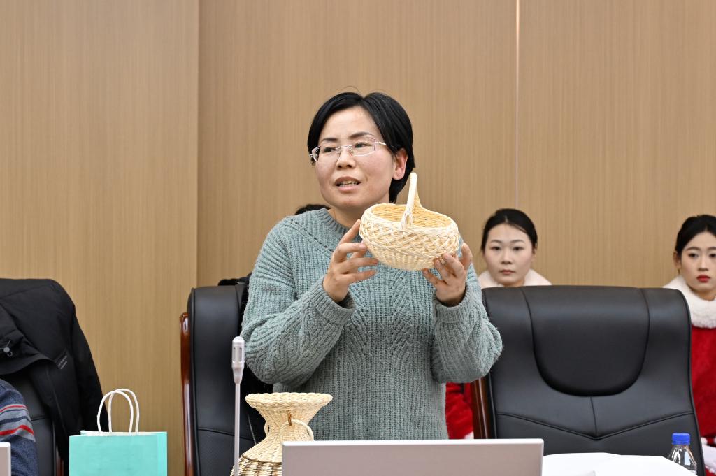“松花江浪木根雕”传承人梁海臣老师、“赵氏烫画”传承人赵广清老师、“满族柳编传统技艺”传承人刘志敏老师、“古建筑彩画”传承人贾辉老师、“皮饰工艺”传承人王怀民老师作代表性发言,对学校搭建非遗文化交流的平台表示感谢,分别就各自手工技艺与冰雪元素的结合真诚地分享了成功经验。