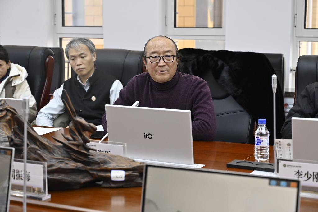 智慧冰雪文旅学院王辉院长汇报了自2009年来我校非遗文化进校园的成果,结合智慧冰雪旅游专业群的发展规划,表达了未来将从数字非遗,智慧文旅的角度发掘、传承吉林冰雪非遗文化的愿景。